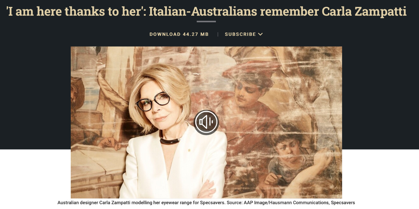Carla Zampatti era nata in Lombardia, a Lovero (in provincia di Sondrio) nel 1942, ed era emigrata nel 1950 in Australia con la sua famiglia. A soli 24 anni avviò la sua casa di moda, che successivamente l’ha portata a ottenere successo e riconoscimenti importanti. Il ricordo di SBS Italian